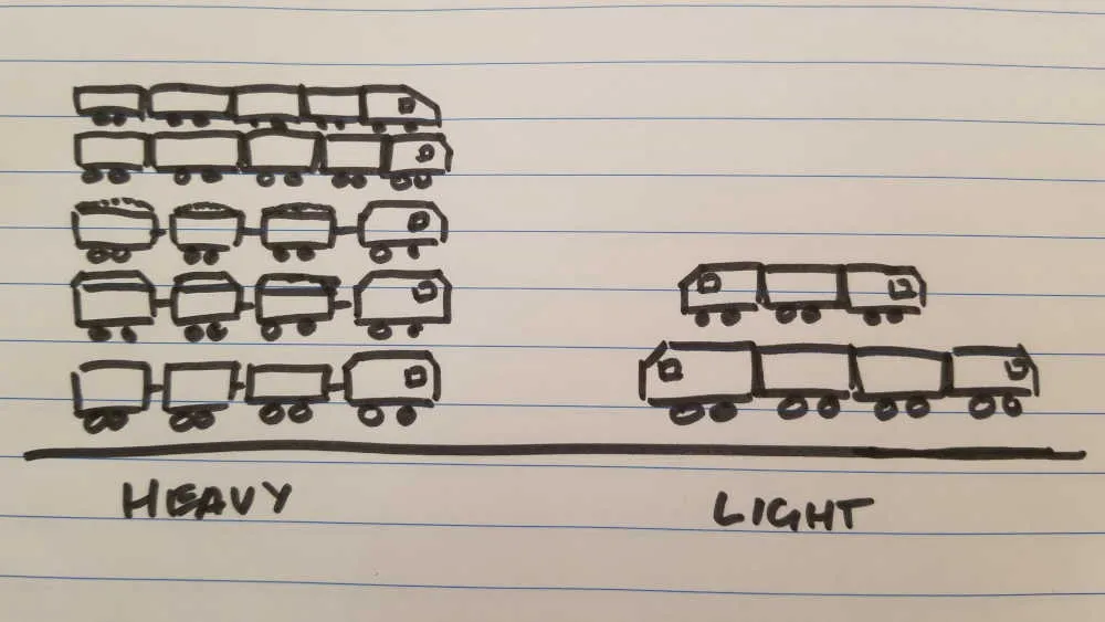 Heavy rail can support more trains, longer trains, and heavier trains such as freight
